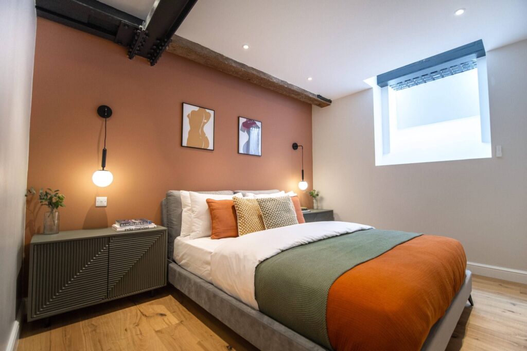 This expansive 1800sqft home in Manchester’s Ancoats district evokes a convivial feel. Sleeping up to 12 people, it is perfect for families and large groups. Featuring three bedrooms, three bathrooms, a cinema-style room and pool/billiards area. Design meets architectural drama at this three-bedroom duplex super-home.